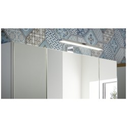 3 Spiegeltüren, davon eine große Tür in der Mitte und zwei kleine Türen außen, dahinter jeweils zwei Glasböden (belastbar bis zu 1 kg),