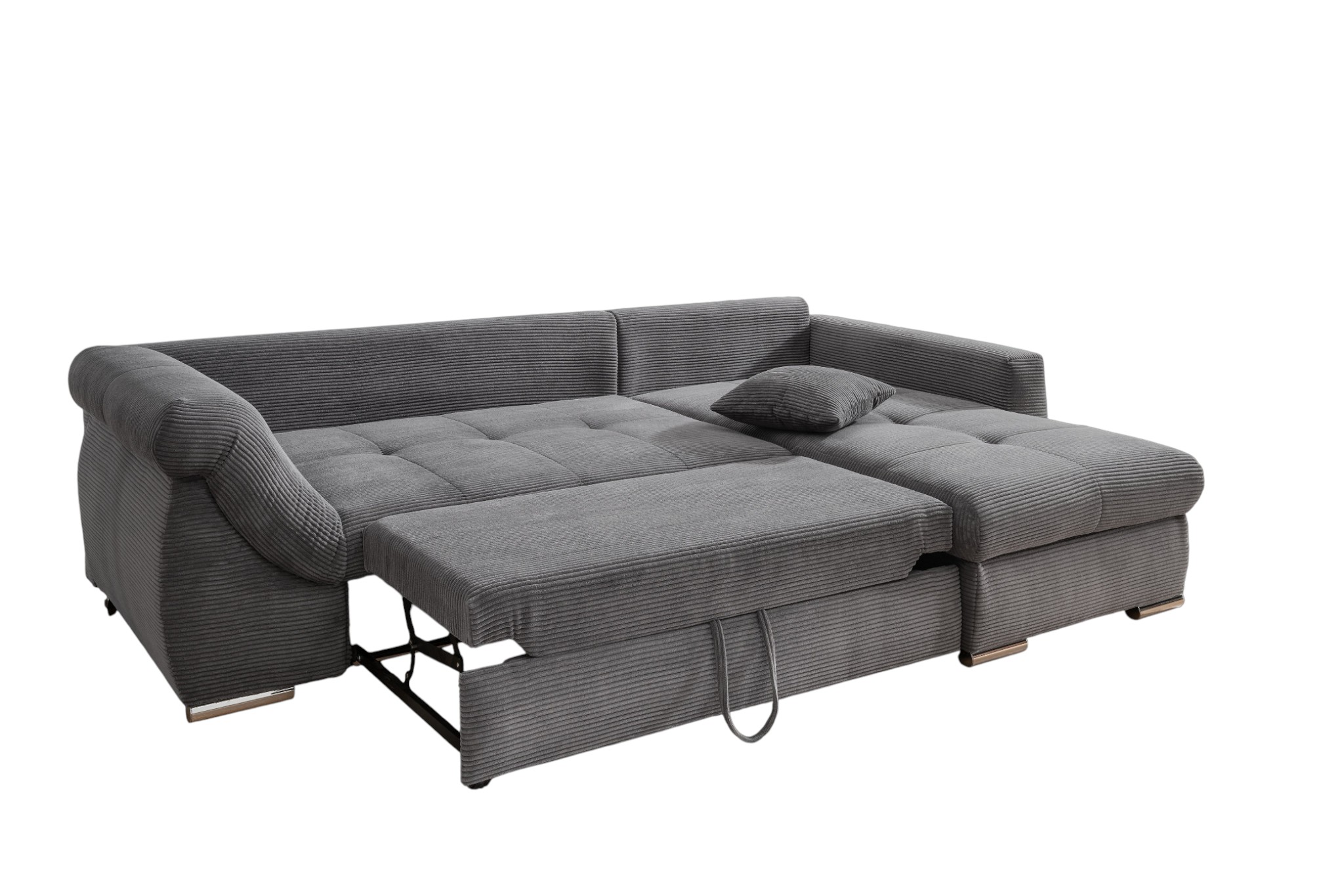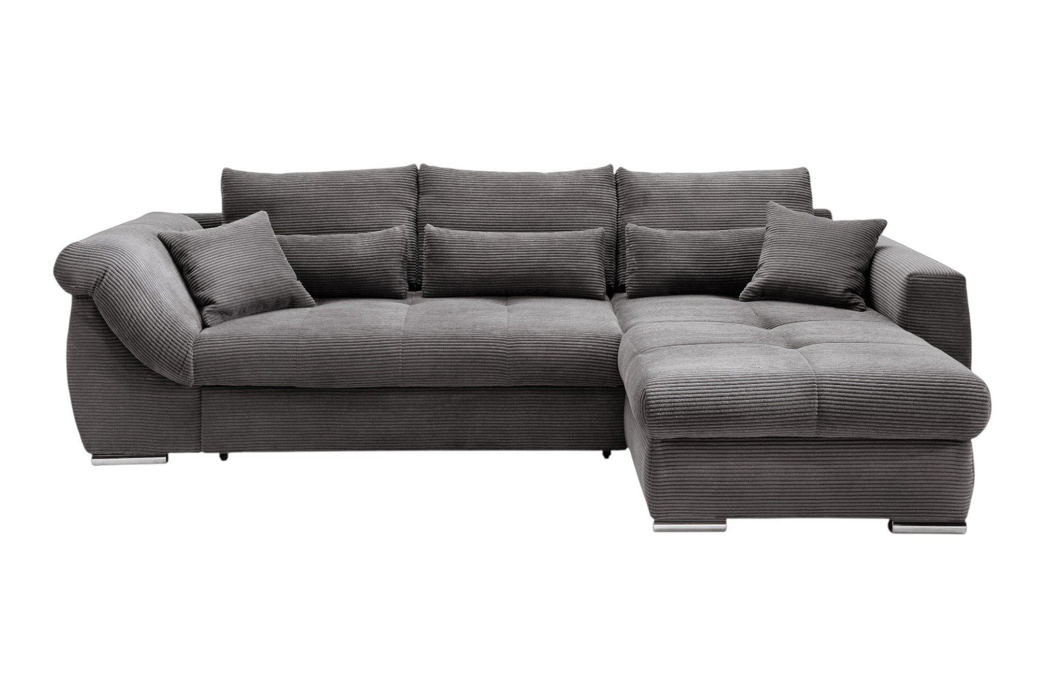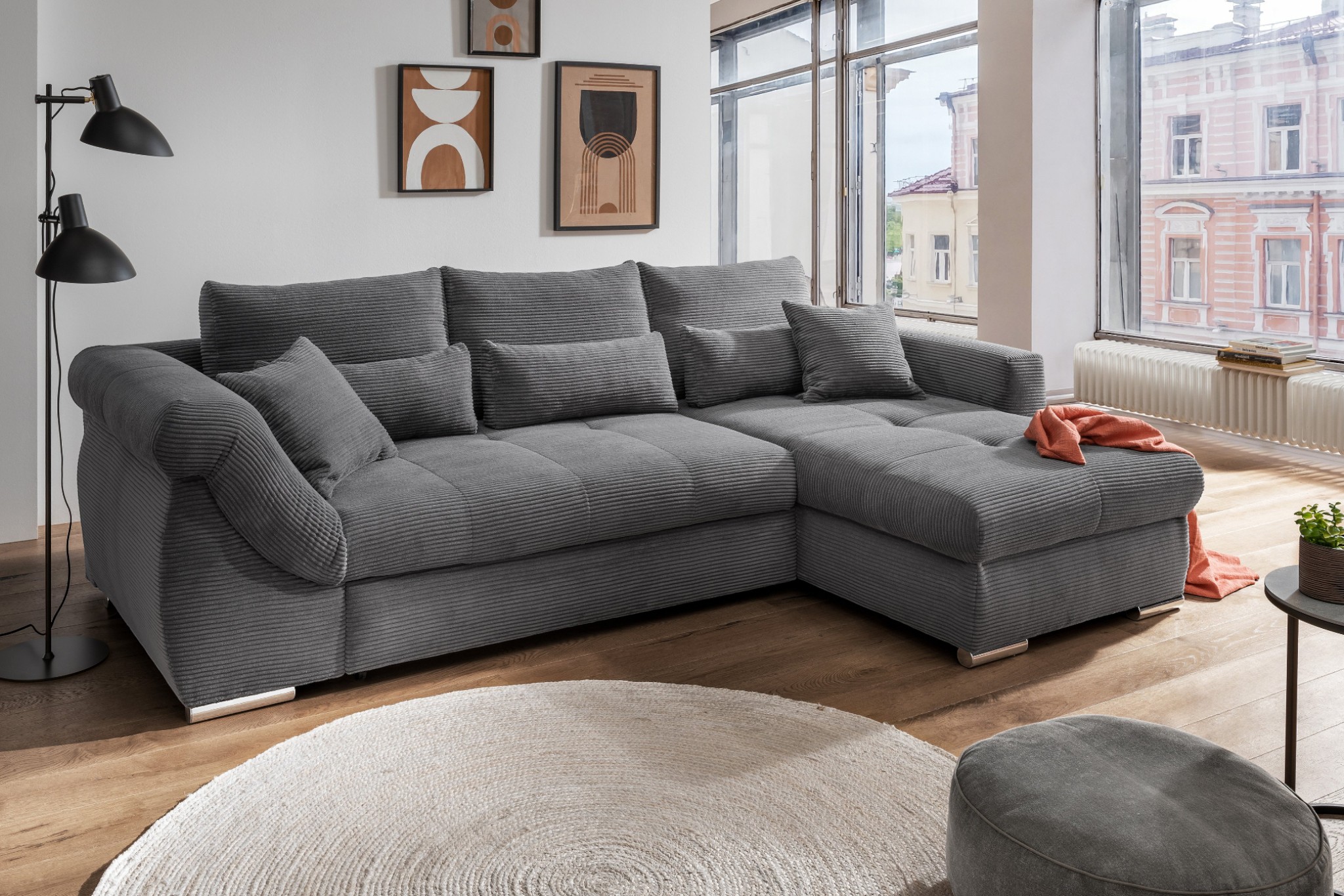 Modern, gemütlich und praktisch zugleich: Das Ecksofa FEDERICO überzeugt durch sein stilvolles Design in weichem Cordstoff und seine durchdachten Funktionen – ideal zum Entspannen, Schlafen und Verstauen.